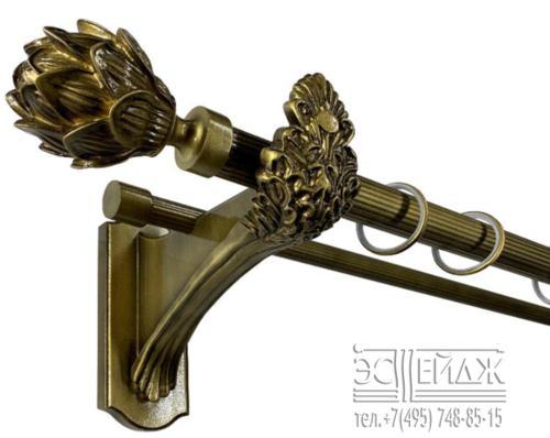 Эксклюзивная коллекция карнизов Олимпия. Широкий ассортимент оригинальных наконечников и кронштейнов, выполненных вручную. Подходит для тяжелых и очень тяжелых штор.